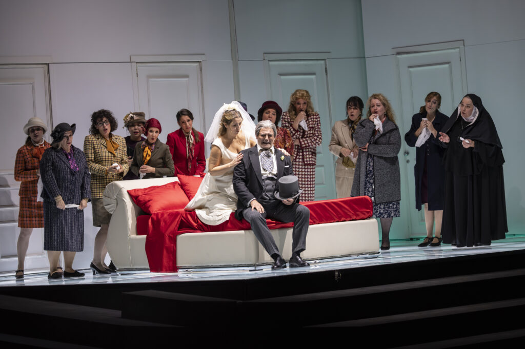 Needless to say, the singers have a field day: they can overdo it, and it will still be just right, with the appropriate touch of irony in their interpretation. Their undeniable talents, each in their own “register,” appearance, stage presence, and vocal ability, all “bring them joyfully into play”! The cast includes Ruzil Gatin as Fadinard, Pietro Spagnoli as Nonancourt, Maria Grazia Schiavo as Elena, Josy Santos as the Baroness of Champigny, Marcello Rosiello as Beaupertuis, Rodion Pogossov as Emilio, Elena Galitskaya as Anaïde, Didier Pieri as Uncle Vezinet, Lorenzo Martelli as Felice, Elisa Verzier as the Modiste, Blagoj Nacoski as Achille di Rosalba, Marc Tissons as the Captain of the Guard, and Leonid Anikin as Minardi.