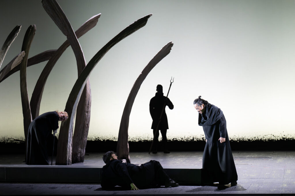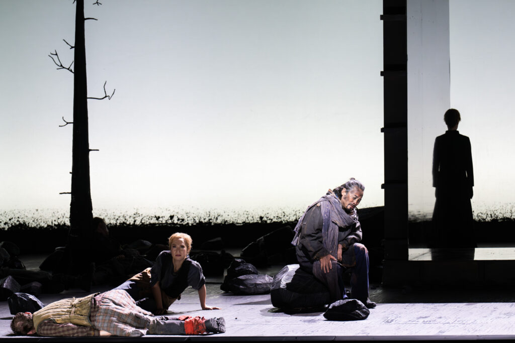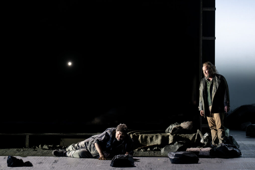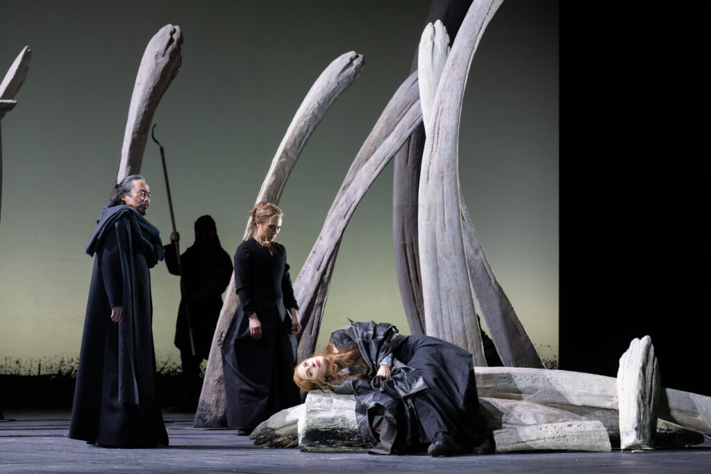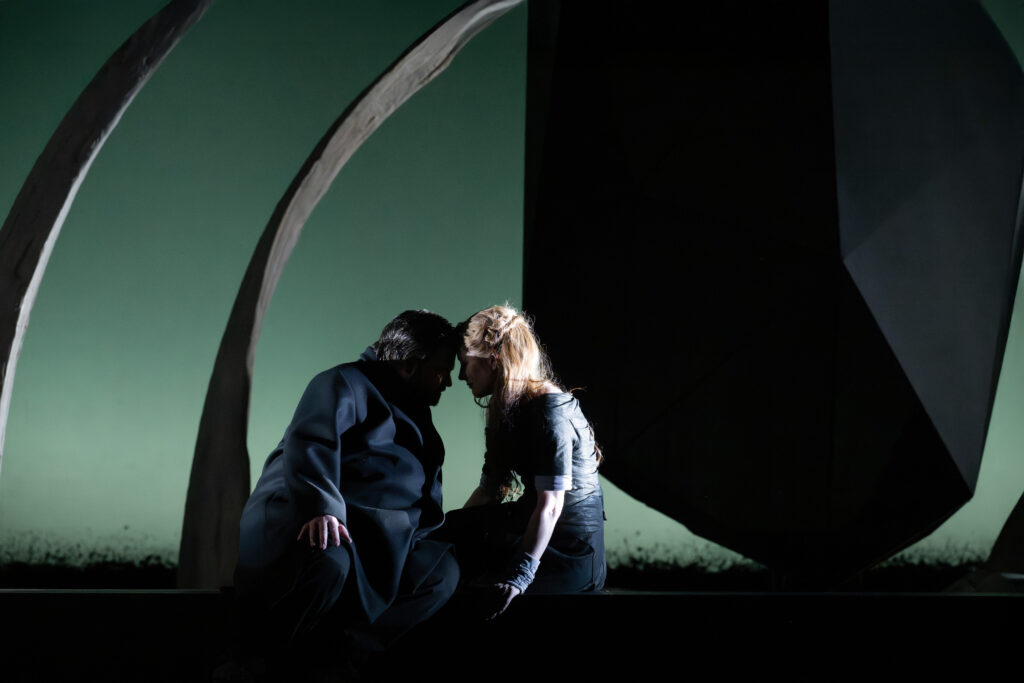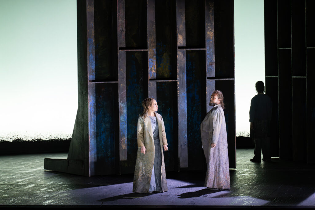 Het is verfrissend om nu eens een jeugdige Brangäne vertolkt te zien, met een fraai ontworpen rok, die de hoekigheid van de grote steen nabootst. Irene Roberts’ stem heeft grote kwaliteit en allure. Haar hoge noten bliksemen als een vuurpijlenregen en haar spel is overtuigend. Jordan Shanahan (Kurwenal) beschikt over een stralende bariton met klaterende hoge noten, energiek en accuraat in spel en timing. Liang Li heeft als Koning Marke een “stationshal” van een stem. Het wat onrustige vibrato in het begin van de voorstelling kwam met het vorderen van de avond in evenwicht, waardoor de ruimtelijkheid van de klank goed tot zijn recht kwam.
